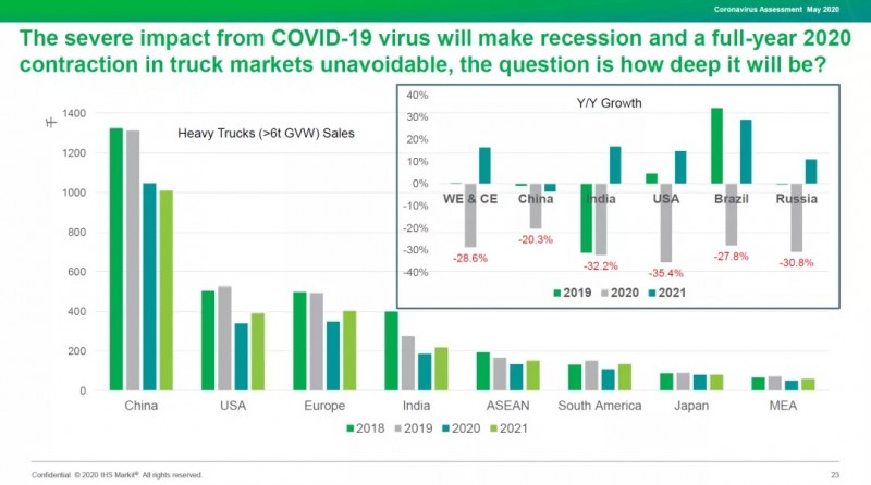 2020年2月, 新冠肺炎的爆发给中国中重卡市场的产销造成了重创,当月中重卡市场产销同比下滑50%以上;随着疫情逐步缓解,中重卡市场迅速恢复,在2020年4月,中重卡当月销量达到月度历史新高,同比增长接近60%左右。哪些因素刺激了4月的高销量?而未来短期市场需求又将如何发展?在2020年全球中重卡市场需求预期大幅下调的大背景下,中国的中重卡市场是否会成为一枝独秀?