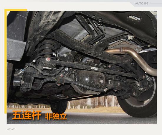 五连杆非独立后悬架可以保证后桥更好的驱动能力,尤其是大强度负荷的使用环境更有保证,多连杆的布局又改善了公路的循迹性能,提升主动安全性。