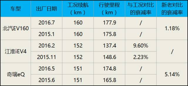 比较奇葩的是江淮iEV4新旧两车的表现,两车均出现续航衰减,老车有理由,新车不应该,而且,居然是5万多公里的老车衰减得更少!