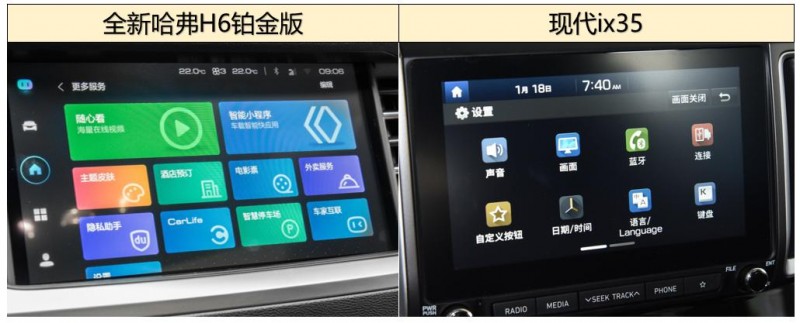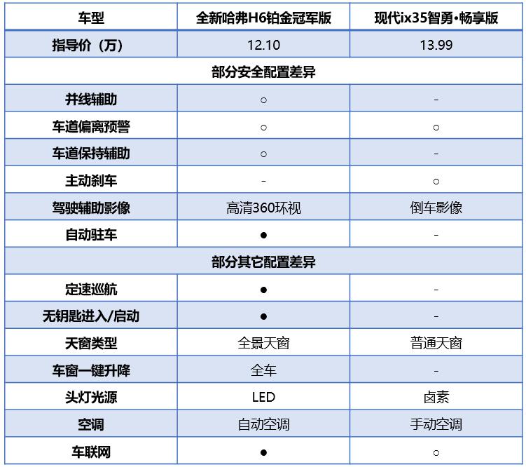 我们选择指导价12.10万元的全新哈弗H6铂金冠军版,对比指导价13.99万元的现代ix35智勇·畅享版,二者价格相差不到2万,也都同属于紧凑级SUV,进行PK也算公平。