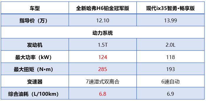究其原因也不难理解,因为全新哈弗H6铂金冠军版的1.5T发动机是目前哈弗的王牌产品,拥有行业领先的CVVL连续可变气门升程技术、双VVT等多项高科技,具有国际一线实力。而现代ix35这款发动机,还是几年前的产品,整体技术是较为落后的,也可以说是一款濒临淘汰的产品,因此相比于哈弗1.5T发动机不占优势。