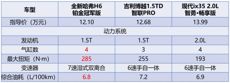 综合动力和油耗两方面,全新哈弗H6铂金版真可谓“无懈可击”,真正做到了“吃得少,跑得快”,而吉利博越PRO和现代ix35则都有明显短板。全新哈弗H6铂金版这样硬核的动力表现,谁能不爱?