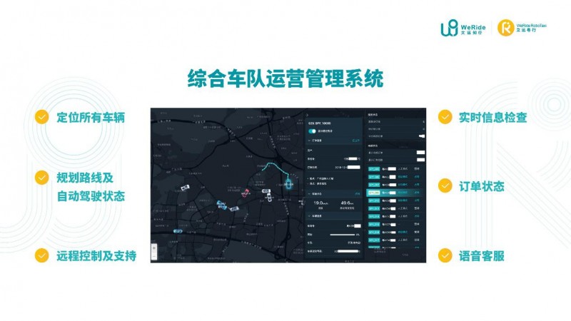 通过分析订单分布特点,文远粤行的车队管理系统实时统筹无订单情况下车辆的自动驾驶巡游路线,在需求旺盛的路段和时段有效配置Robo-Taxi,大幅提高了车辆接单效率,降低乘客等待时间。