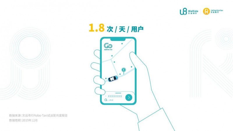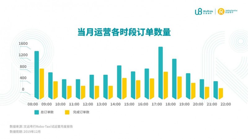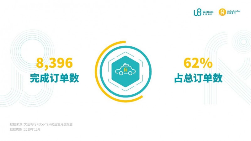 文远粤行Robo-Taxi试运营的首份月度报告显示,在2019年12月,Robo-Taxi共完成了8,396次出行服务,占总订单需求的62%。