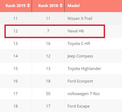 根据全球数据库Focus2move统计,在近年来的全球畅销车型排行榜中,哈弗H6不仅一直稳居前30名,同时也是前30名中唯一一款中国车型。并且,在2019年全球SUV销量排行榜中,哈弗H6远超丰田汉兰达、大众T-Roc等车型,高居榜单第12位。更重要的是,去年年底哈弗H6达成了全球累计销量300万辆的成就,象征着中国汽车发展正式跨入全新阶段。毋庸置疑,哈弗H6就是聚焦战略下耕耘的成果。