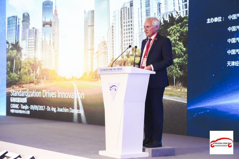 科技创新驱动离不开科技,科技最关键重要是标准,标准的引领,标准在生产实践当中起到至关重要的作用,标准化的水平提升也促进了产品质量和管理水平的提升,标准化的水平是一个国家经济社会发展水平的重要标志,汽车产业是不是强国,那么也要看一看标准是不是强,是不是有重要的引领和推动力量,下面我们首先有请德国汽车工业协会副主席Joachim Damasky进行演讲,演讲题目是标准化推动创新。