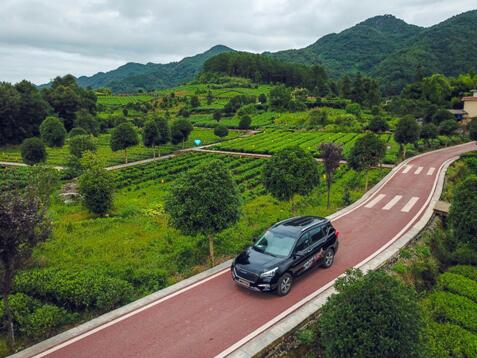 遵义是中国茶城,山川秀丽、土地肥沃的湄潭更被成为中国名茶之乡,当地人特别喜欢喝茶,在七彩部落有600余亩生态茶园,村民把茶园打理的多姿多彩,茶园上悬着五颜六色的伞,成为一道亮丽的风景线。明清贡茶园是湄潭茶文化的地理标识,在古代社会,茶就已经成为官员争相购买的高档饮品。在湄潭就有这样一片茶园,茶叶常年供给皇家,也就是今天的明清贡茶园。现在,湄潭县各大茶企把这片茶园有效利用起来,成就了今日有名的湄潭茶。哈弗M6穿行在茶园中,空气中四处弥漫着茶叶的清香,头顶是湛蓝的天空以一缕缕的秀红晚霞做点缀,M6开着远近光一体式的前大灯,锐利的线条设计使整车看起来十分具有视觉冲击性,,此刻情境下哈弗M6真是美极了!