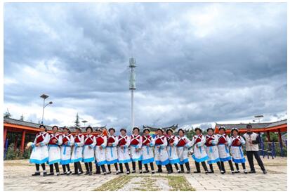 玫瑰小镇是世界上唯一一个由九个民族聚居形成的村落。各少数民族优秀的艺术氛围也让这里形成了丰富的民俗文化。热情的少数民族同胞用手鼓表演了浪漫而经典的歌曲《一瞬间》