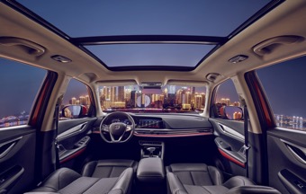 驾舱中的“越级星空全景天窗”、D型多功能运动方向盘、星舰式换挡手柄造型带来了更为舒适的驾乘体验。而科技关怀设计的中控台、10.25英寸视网膜级高清极目双联屏设计、精准倾斜主驾10°的人性化布局无时无刻都在提醒大家,这是一辆具备领先智能化配置的SUV。