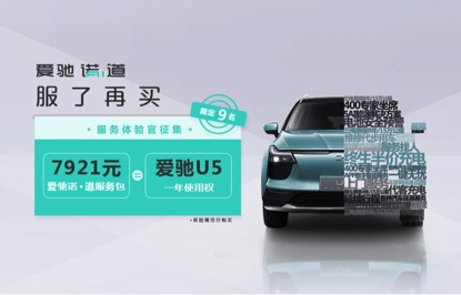 爱驰汽车执行副总裁蔡建军正式宣布,对外征集9名服务体验官,只需用7921元购买一年的爱驰服务,便可免费畅享驾驶爱驰U5体验车1年。让用户通过沉浸式深入体验,来验证诺道的服务承诺是否能得到消费者的信服。