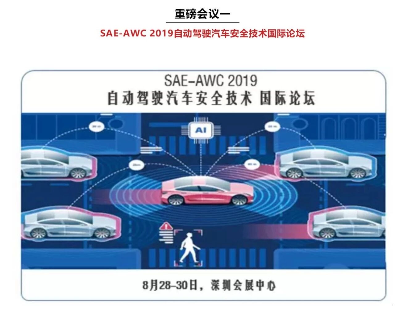 由励展博览集团与SAE International战略合作带来的同期“SAE-AWC 2019自动驾驶汽车安全技术国际论坛”,将邀请来自海内外的行业领袖、专家学者,共同探讨自动驾驶汽车的安全挑战及解决方案,包括自动驾驶标准、法规,自动驾驶安全设计,功能安全,网络安全,自动驾驶系统技术,安全测试,验证评价等丰富内容。