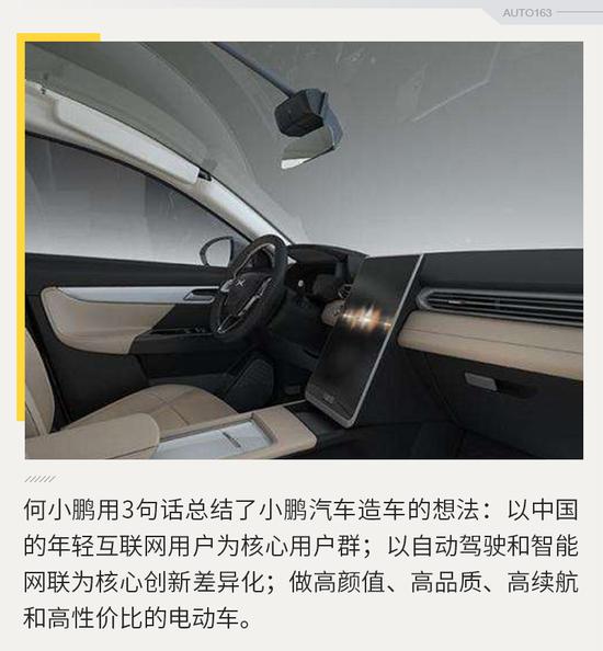 何小鹏用3句话总结了小鹏汽车造车的想法:以中国的年轻互联网用户为核心用户群;以自动驾驶和智能网联为核心创新差异化;做高颜值、高品质、高续航和高性价比的电动车。