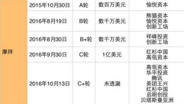 摩拜单车在共享单车大战里可以算是一只大军,这个行业内的先行者在几乎一年的时间里就已经完成了C+轮融资,投资金额达到了数亿美元。且投资方基本都是一些知名的投资机构,包括红杉、创新工场、贝塔斯曼、启明、熊猫、祥峰,甚至美团王兴也参与其中。
