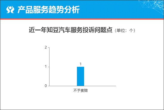从服务投诉问题点来看,知豆品牌只有1个“不予索赔”的服务投诉点,通过进一步分析可知,该投诉来自于知豆D1车型。