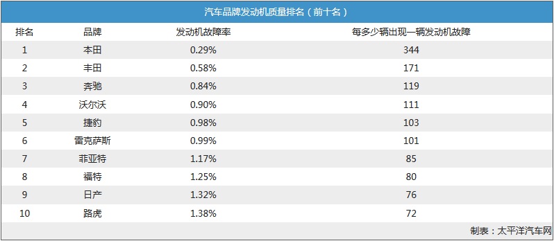 近日,英国最大的保养服务提供商Warranty Direct在分析了5万多个样品后发布了一份汽车发动机故障率排行榜。虽然样品的范围只在欧洲,但对于中国消费者来说也可以参考一下。