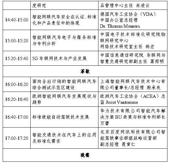 会议邀请中汽中心、装备中心、交通部公路科学研究院、公安部交通管理科学研究院、信通院、电子技术标准化研究院专家齐聚,从标准制定及行业管理角度畅谈产业发展现状和趋势。