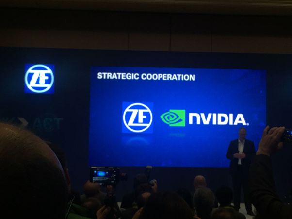 几乎是整整一年前的2017年1月3日,在美国拉斯维加斯举办的年度国际消费电子展(CES)上,采埃孚与人工智能芯片供应商英伟达(NVIDIA)宣布合作为交通运输行业开发人工智能系统用于乘用车、商用卡车和工业应用的自动驾驶和自主驾驶系统,并发布双方共同开发的具有人工智能的超级计算器ProAI,使车辆通过深度学习来处理来自传感器和摄像头的数据,从而清晰地识别周围的环境。ProAI使用可扩展的NVIDIA DRIVE PX 2 AI运算平台来处理多个摄像头的数据,并结合来自激光雷达、雷达和超声波传感器的输入。ProAI能实时了解车辆周围发生的情况,在高清地图上精确地进行自身定位,并为车辆规划出一条安全的前行路径。该解决方案将满足汽车级标准,即使曝露于极端温度、湿度和灰尘环境中也能正常运转。量产计划于2018年开始。