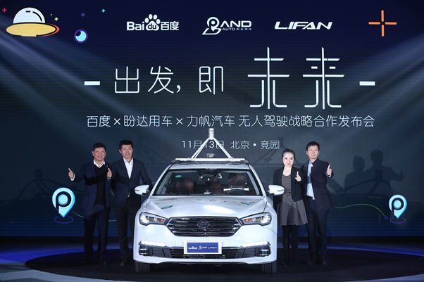2017年11月13日,百度、力帆汽车及盼达用车在北京举行战略合作发布会,签订《战略合作框架协议》,力帆汽车与盼达用车成为百度Apollo开放平台的合作伙伴。三方将围绕自动驾驶展开合作,推动自动驾驶共享汽车的商业应用,为缓解城市道路拥堵、保障出行安全、提高共享汽车出行效率贡献力量。具体到合作内容:百度将在高精地图和自动驾驶等软件方面提升自动驾驶汽车的技术水平;力帆汽车作为整车制造企业,将从之前的重点布局海外转型到国内市场,提供盼达用车自动驾驶的使用车辆;盼达汽车作为运营商,将负责车辆的实际落地和运营服务。