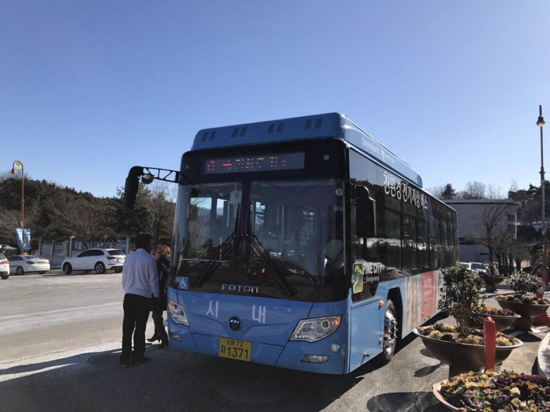 【2018平昌冬奥期间福田欧辉纯电动公交为韩国市民提供绿色出行服务】